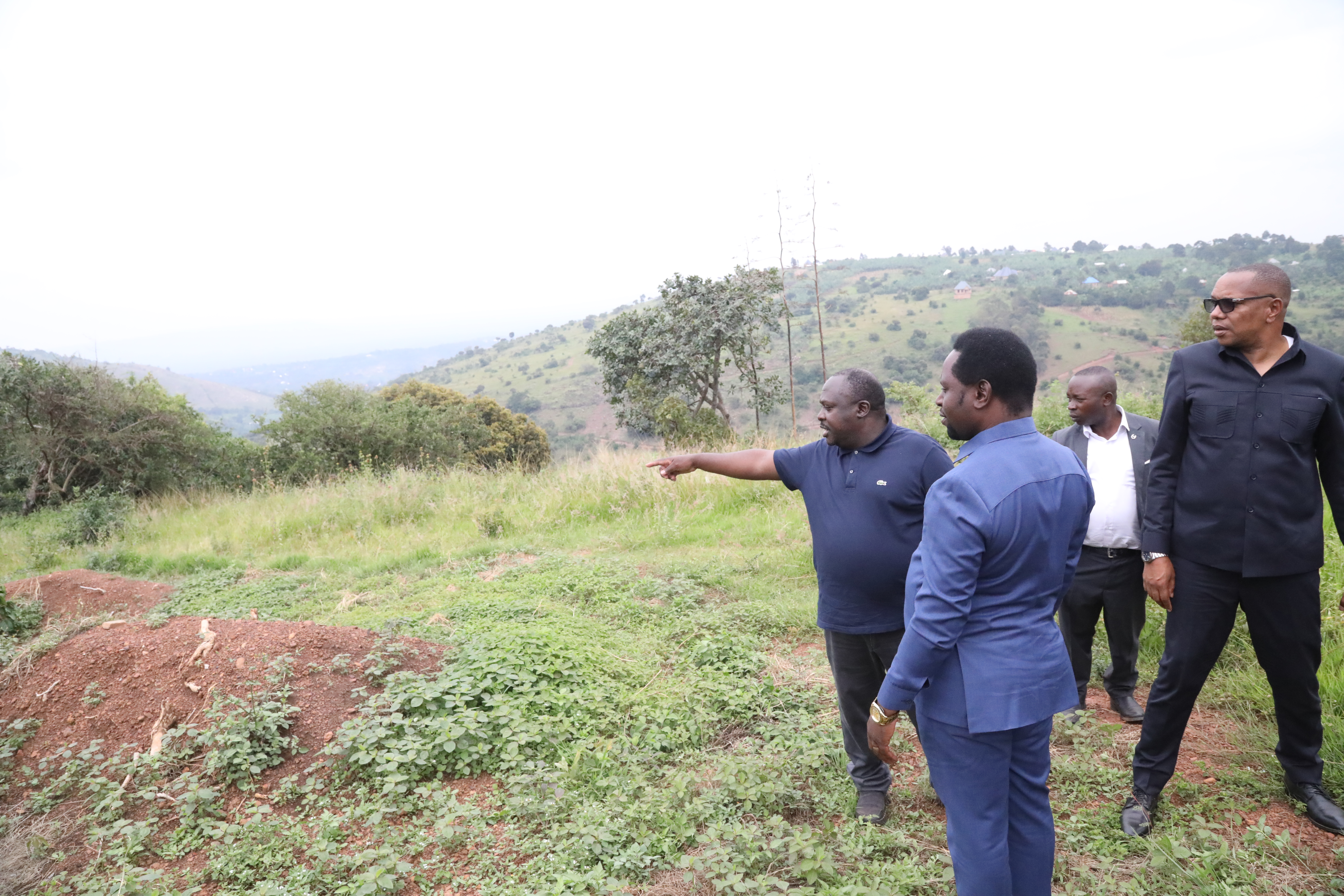 Naibu Waziri Ofisi ya Makamu wa Rais (Muungano na Mazingira) Mhe. Dkt. Festo Dugange akitembelea mradi kilimo mseto (Kinoni Agroforestry Farm) kwenye picha ya juu unaotekelezwa na Kampuni ya KADERES, katika Wilaya ya Karagwe mkoani Kagera.