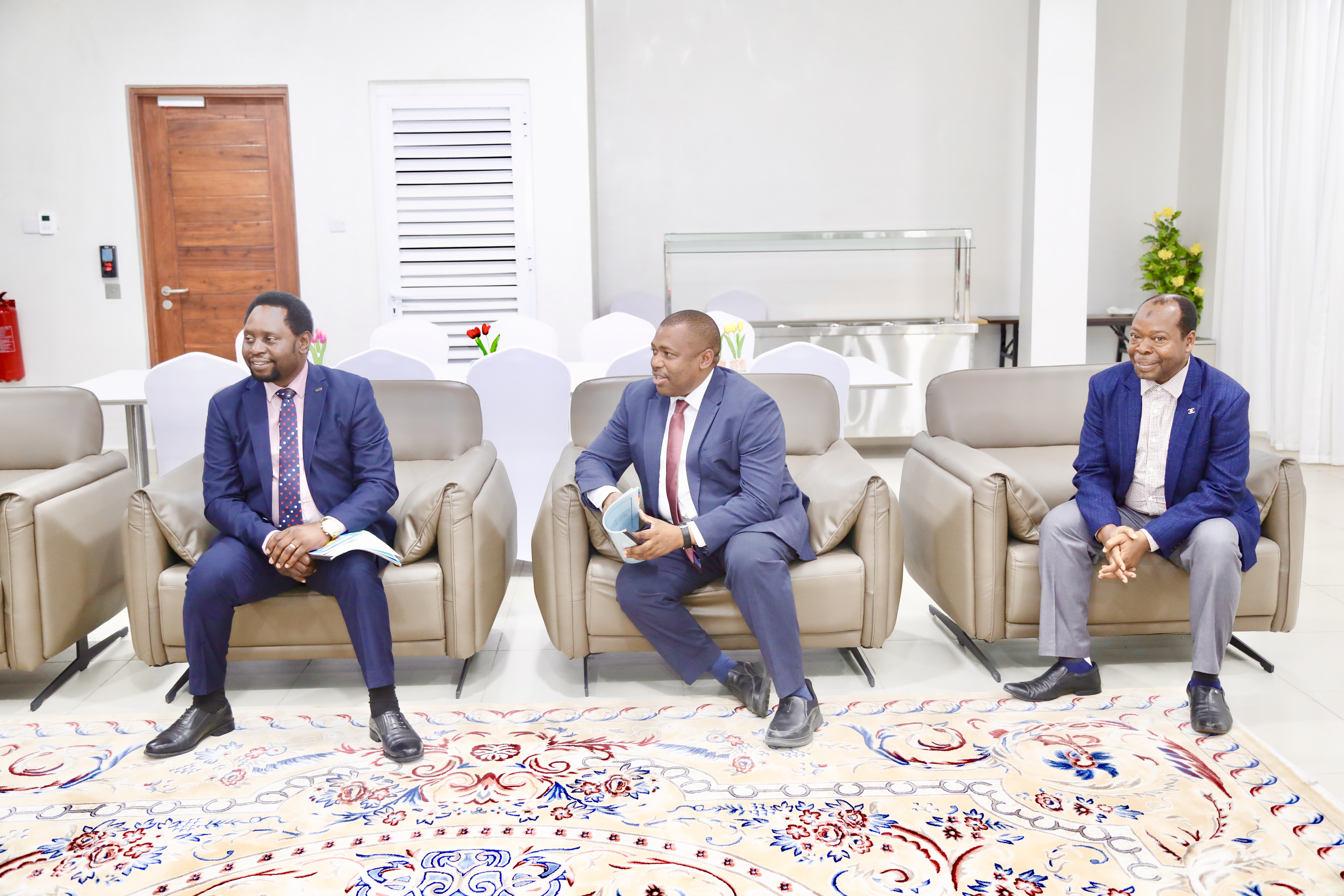 Naibu Waziri Ofisi Makamu wa Rais (Muungano na Mazingira) Mhe. Dkt. Festo Dugange akifanya mazungumzo na Waziri wa Nchi Ofisi ya Makamu wa Pili wa Rais (Sera, Uratibu na Baraza la Wawakilishi) Mhe.Hamza Hassan Juma (hayupo pichani) wakati wa ziara ya kikazi leo Februari 16, 2026 Zanzibar. Katikati ni Kaimu Katibu Mkuu Ofisi ya Makamu wa Rais Bw. Abdallah Hassan Mitawi na Naibu Katibu Mkuu Ofisi ya Makamu wa Pili wa Rais Bw. Salhina Mwita Ameir.
