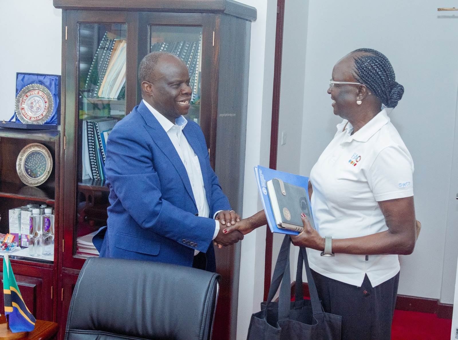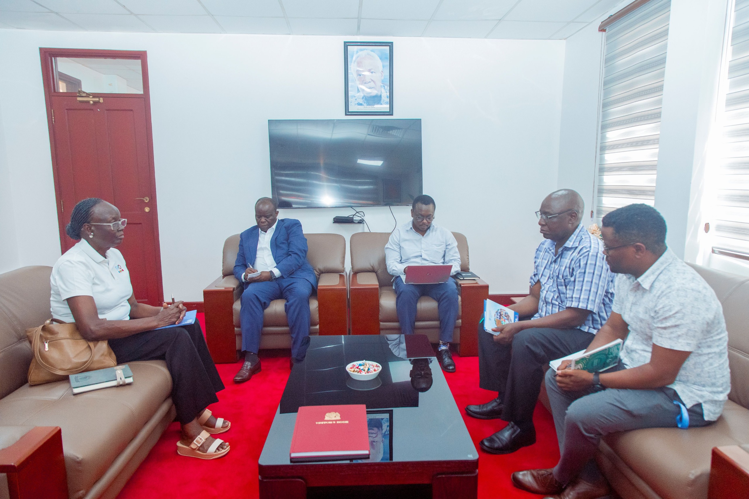 Katibu Mkuu Ofisi ya Makamu wa Rais Rais Dkt. Richard Muyungi amekutana na kufanya mazungumzo na Mwakilishi Mkazi Shirika la Kilimo na Chakula Duniani Dkt. Tipo Nyabenyi walipokutana na kufanya mazungumzo, jijini Dar es Salaam, Januari 23, 2026.