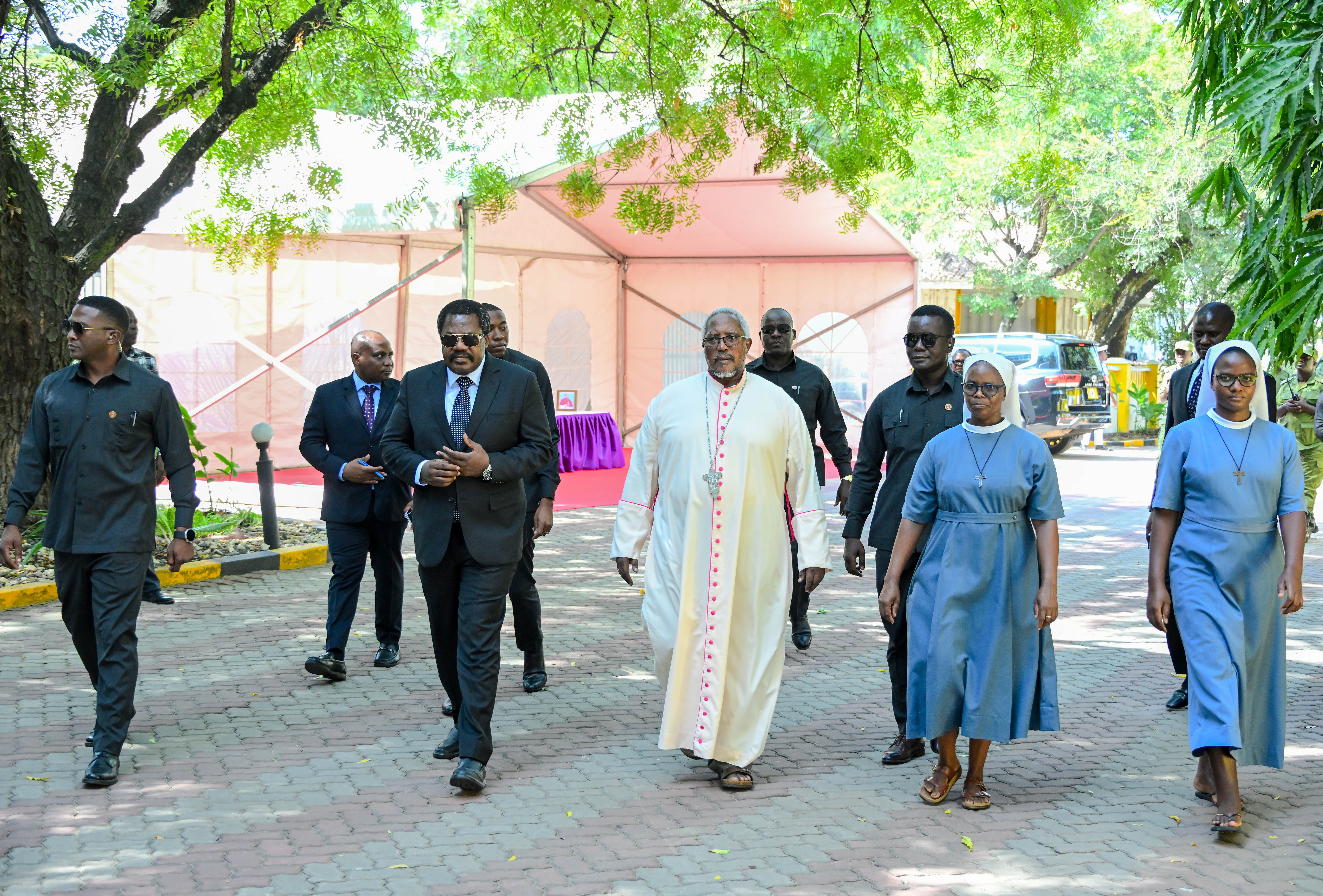 Makamu wa Rais wa Jamhuri ya Muungano wa Tanzania Mhe.Balozi Dkt. Emmanuel Nchimbi amefika katika makazi ya Kiaskofu ya Jimbo Kuu Katoliki Dar es Salaam, Kurasini, kuwasilisha salamu za rambirambi za Rais wa Jamhuri ya Muungano wa Tanzania Mhe. Dkt. Samia Suluhu Hassan kufuatia kifo cha Askofu Mkuu Mstaafu wa Jimbo Kuu Katoliki Dar es Salaam, Mwadhama Polycarp Kardinali Pengo.