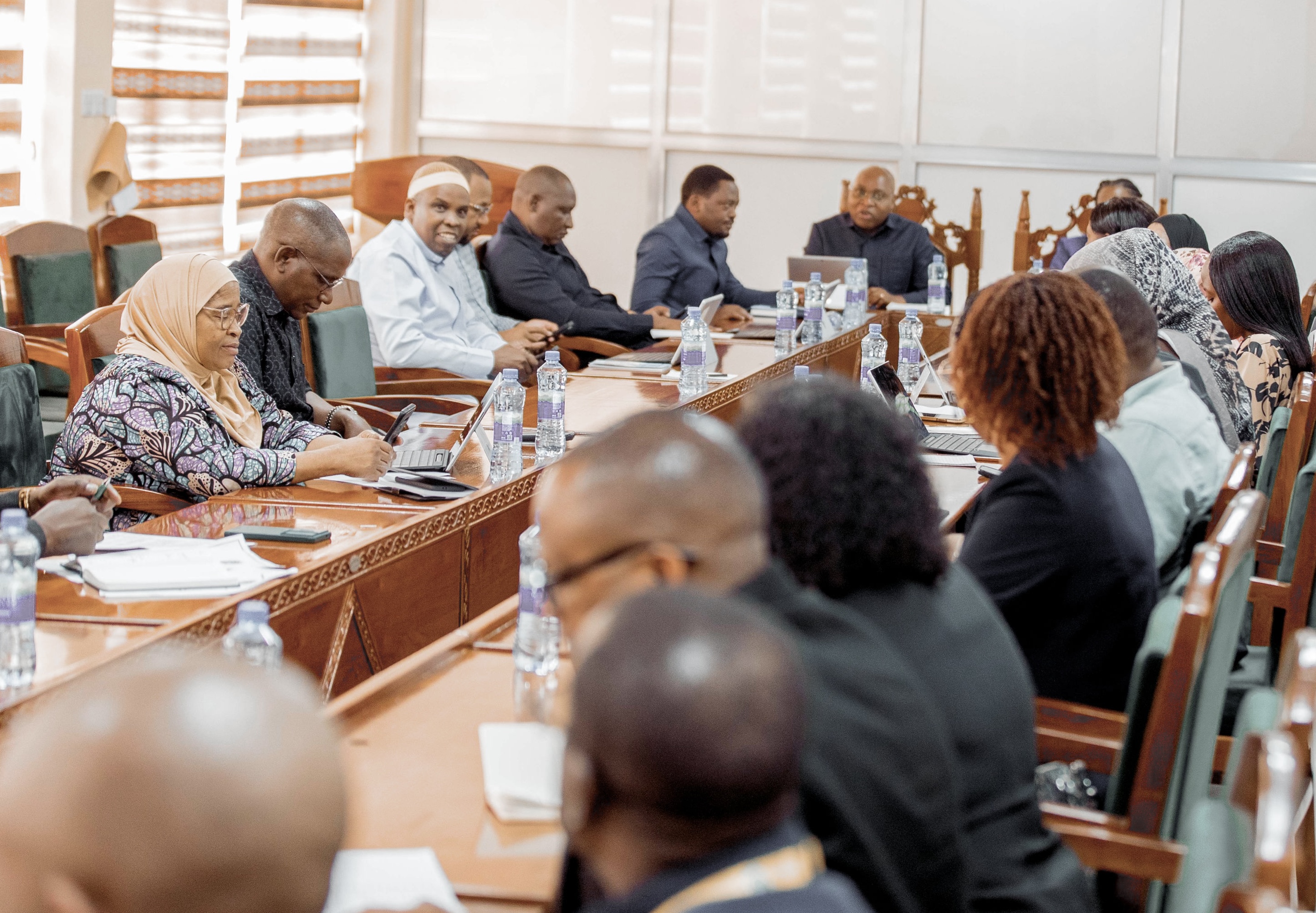 Wajumbe wa Kamati ya Kudumu ya Bunge ya Utawala, Katiba na Sheria wakifuatilia kikao cha kupokea na kujadili taarifa ya miradi iliyotengewa fedha mwaka 2025/26 iliyowasilishwa na Ofisi ya Makamu wa Rais, kilichofanyika kwenye ofisi za Bunge jijini Dodoma.