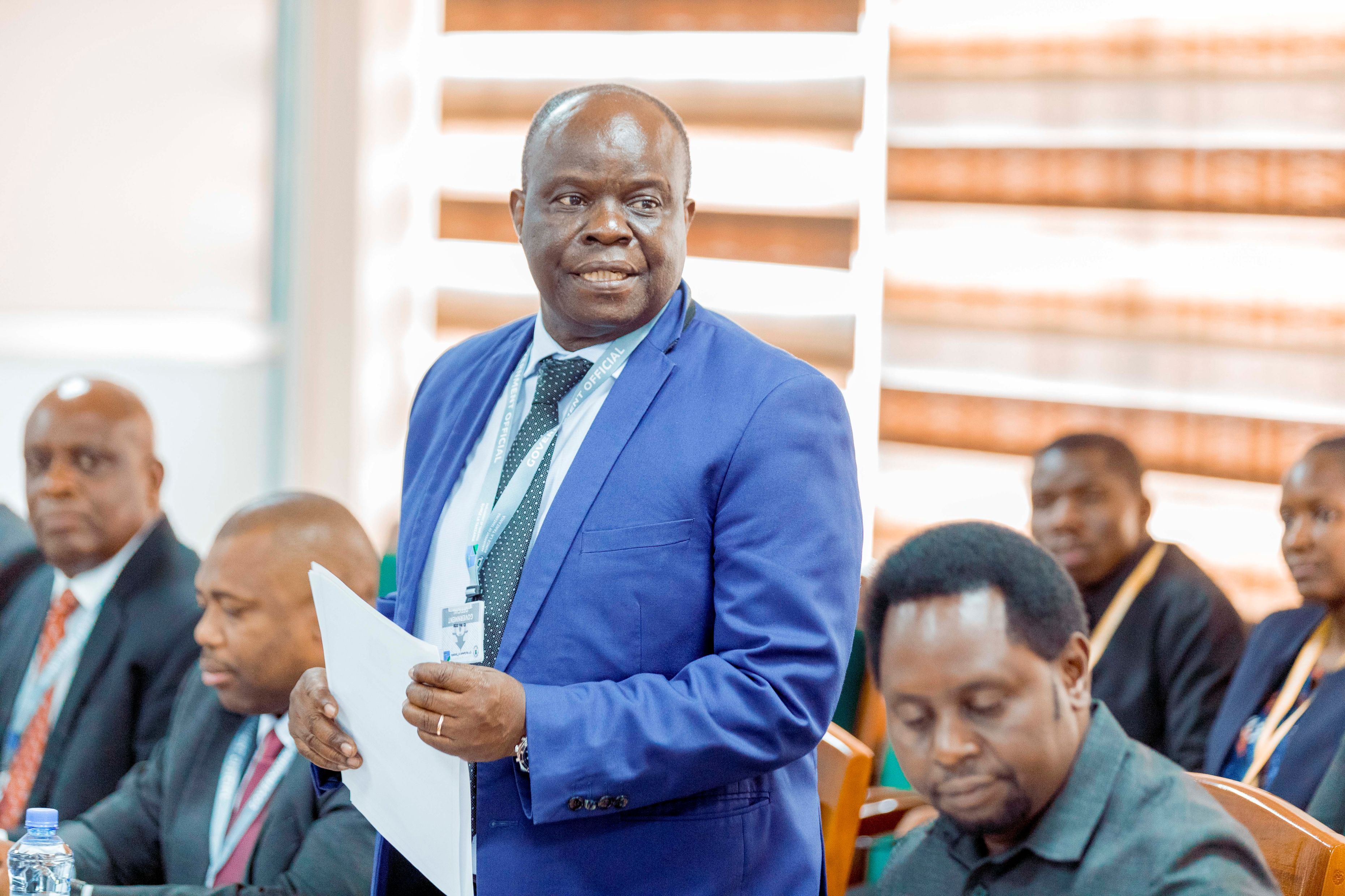 Naibu Waziri Ofisi ya Makamu wa Rais (Muungano na Mazingira) Mhe. Dkt. Festo Dugange akifuatilia kikao cha kupokea na kujadili taarifa ya miradi iliyotengewa fedha mwaka 2025/26 iliyowasilishwa na Ofisi ya Makamu wa Rais kwenye Kamati ya Kudumu ya Bunge ya Utawala, Katiba na Sheria, kikao kilichofanyika kwenye ofisi za Bunge jijini Dodoma. Kulia kwake ni Katibu Mkuu Ofisi ya Makamu wa Rais Dkt. Richard Muyungi.