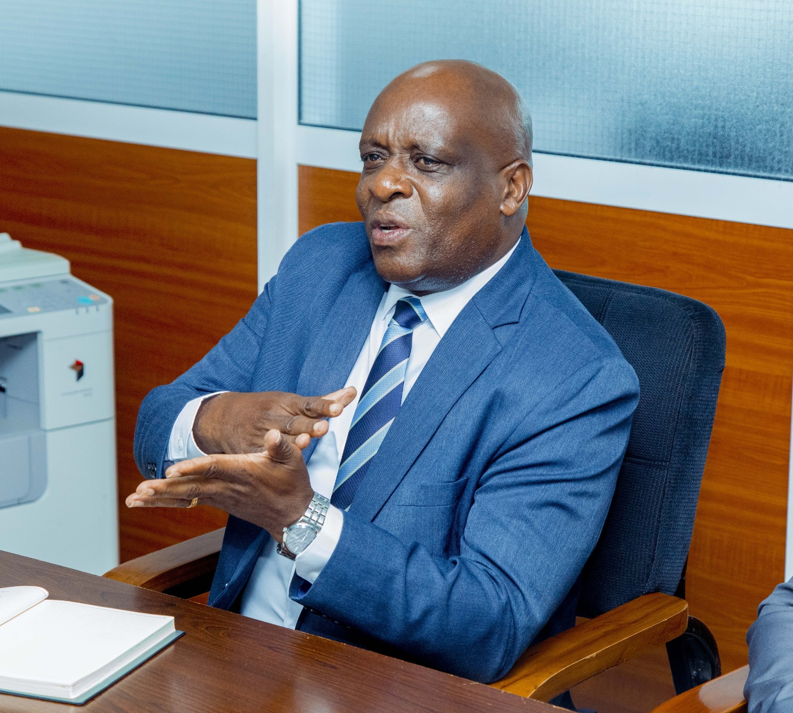 Katibu Mkuu Ofisi ya Makamu wa Rais Dkt. Richard Muyungi amekutana na kufanya mazungumzo na viongozi kutoka Benki ya Maendeleo ya Kilimo Tanzania (TADB) waliotembelea Ofisi ya Makamu wa Rais kwa lengo la kuimarisha ushirikiano katika masuala ya Uhifadhi na Utunzaji wa Mazingira hususan eneo la Mabadiliko ya Tabianchi.