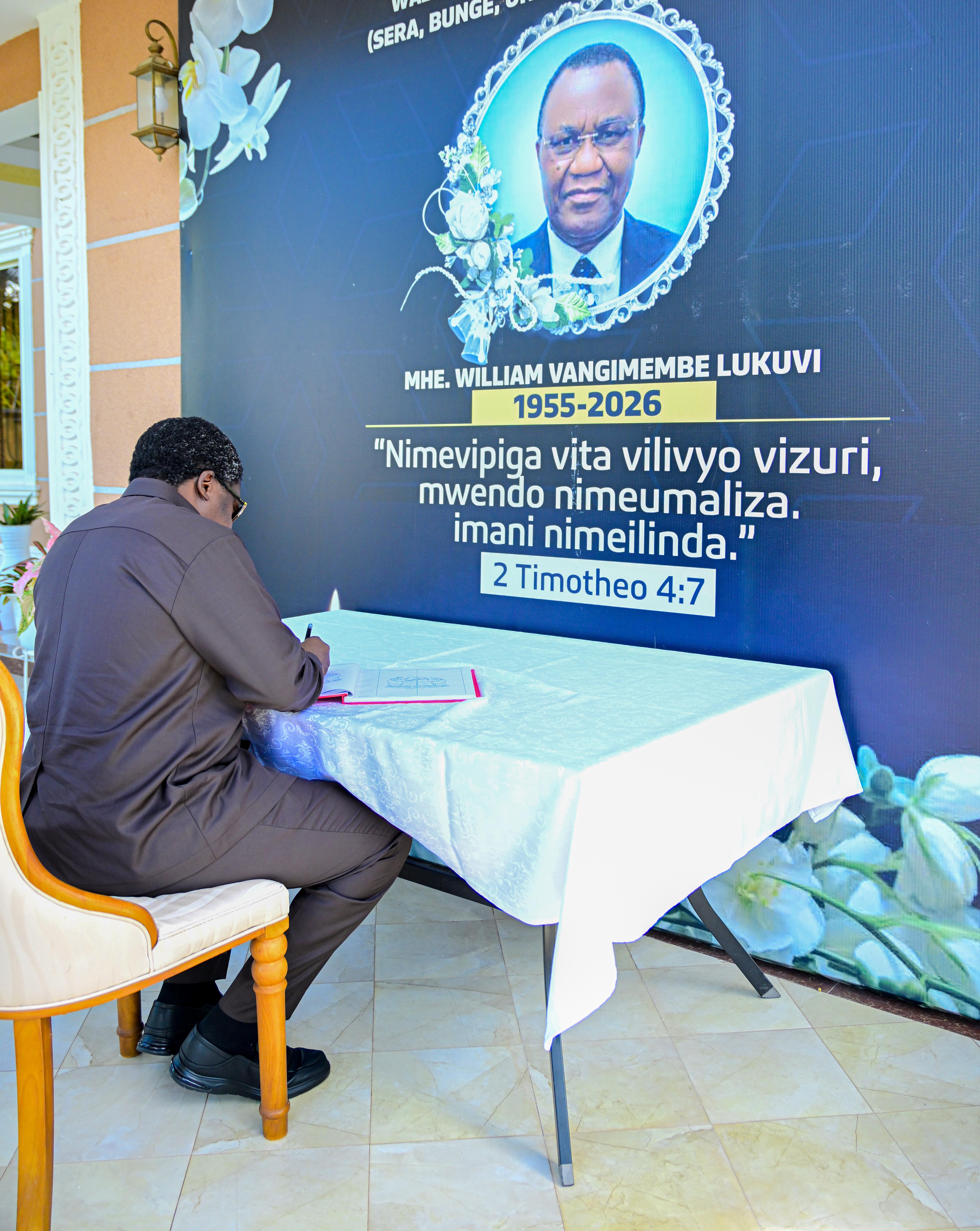 Makamu wa Rais wa Jamhuri ya Muungano wa Tanzania Mhe. Balozi Dkt. Emmanuel Nchimbi ameitembelea na kuifariji familia ya aliyekuwa Waziri wa Nchi, Ofisi ya Waziri Mkuu, Sera, Bunge, Uratibu na Wenye Ulemavu, Marehemu William Vangimembe Lukuvi, katika mkazi yao Mbezi Beach Jijini Dar es Salaam, leo tarehe 16 Aprili 2026. Wakati wa Msiba na Mazishi ya Kiongozi huyo, Makamu wa Rais alikuwa nje ya nchi kwa ziara ya kikazi.