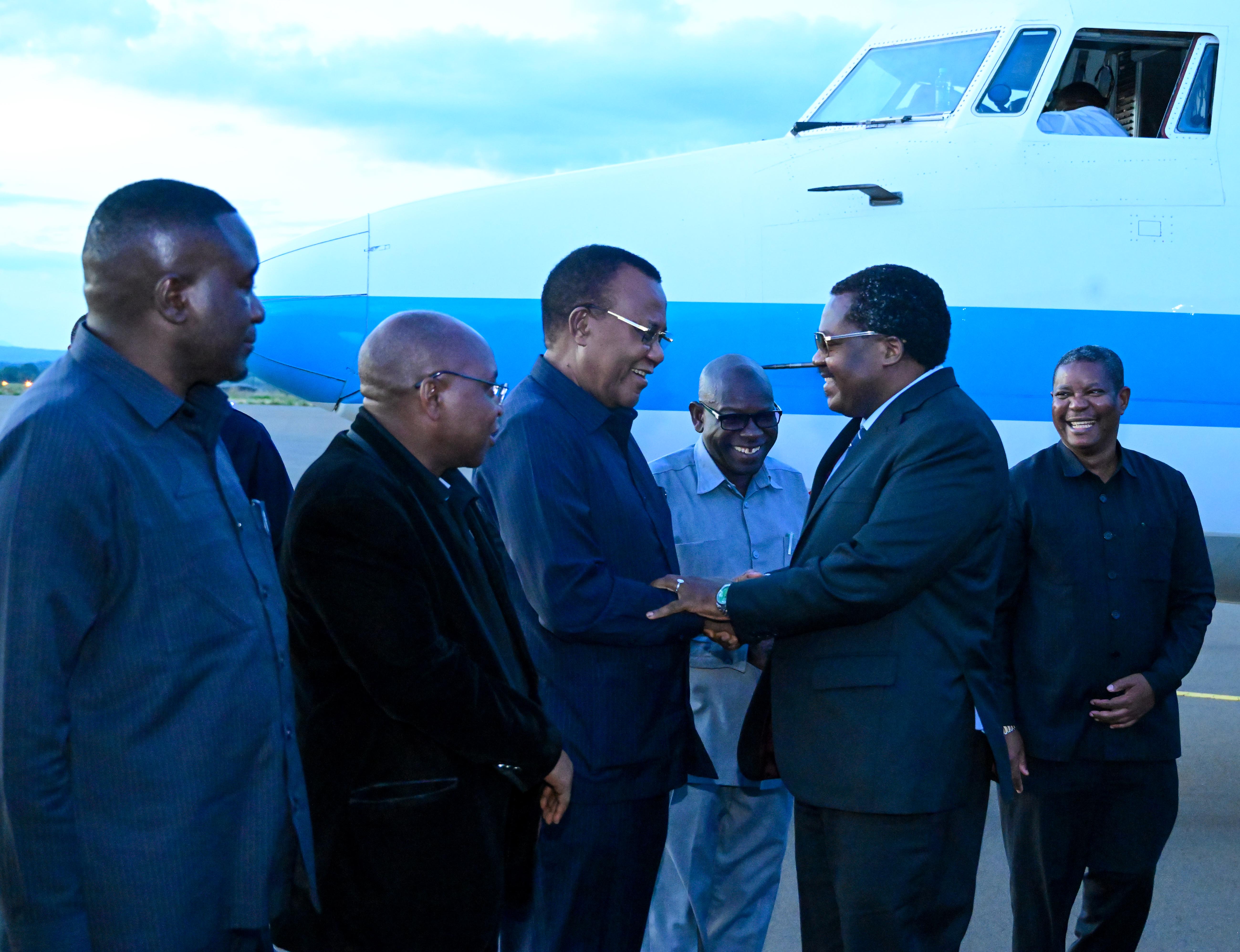Makamu wa Rais wa Jamhuri ya Muungano wa Tanzania Mhe.Balozi Dkt. Emmanuel Nchimbi akiwasili katika Uwanja wa Ndege wa Songea mkoani Ruvuma leo tarehe 15 Desemba 2025. Makamu wa Rais anatarajia kushiriki mazishi ya aliyekuwa Mbunge wa Jimbo la Peramiho, Marehemu Jenista Joakim Mhagama, yatakayofanyika katika Kijiji cha Ruanda mkoani Ruvuma tarehe 16 Desemba 2025.