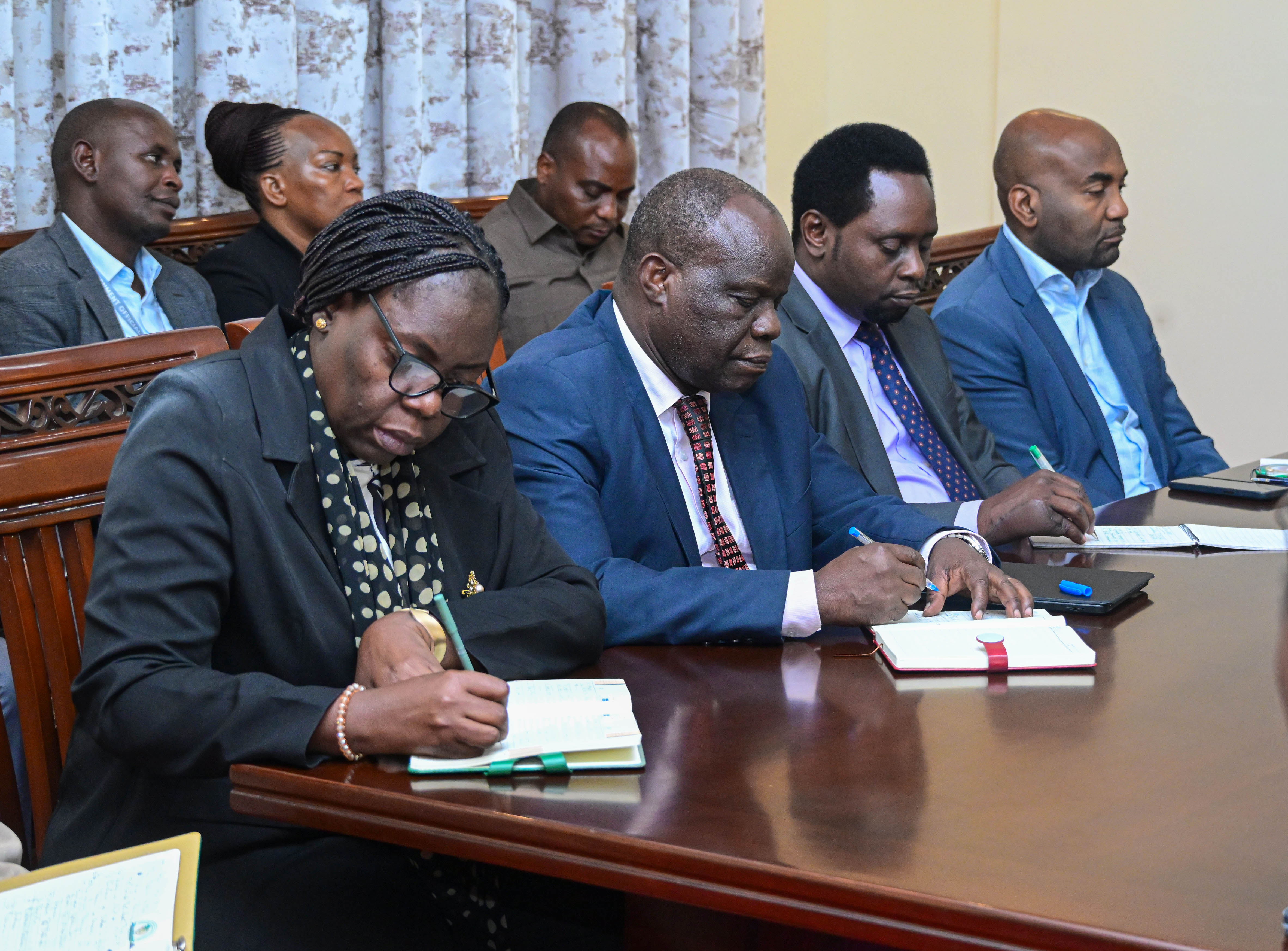 Makamu wa Rais wa Jamhuri ya Muungano wa Tanzania Mhe.Balozi Dkt. Emmanuel Nchimbi akifanya Mazungumzo na Waziri wa Nchi, Ofisi ya Makamu wa Rais (Muungano na Mazingira) Mhandisi Hamad Masauni, Waziri wa Maliasili na Utalii Dkt. Ashatu Kijaji, Naibu Waziri wa Maji, Mhandisi Andrew Kundo, Naibu Waziri Ofisi ya Makamu wa Rais (Muungano na Mazingira) Dkt. Festo Dugange, Katibu Mkuu Ofisi ya Makamu wa Rais (Muungano na Mazingira) Dkt. Richard Muyungi pamoja na wataalamu kutoka Wizara hizo, katika kikao kilichofanyika Ofisi kwa Makamu wa Rais, mkoani Dodoma, leo tarehe 10 Machi 2026.