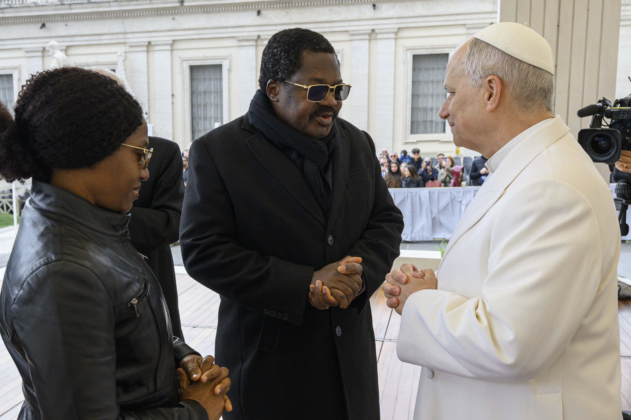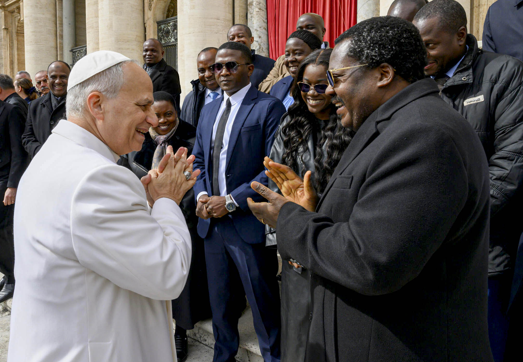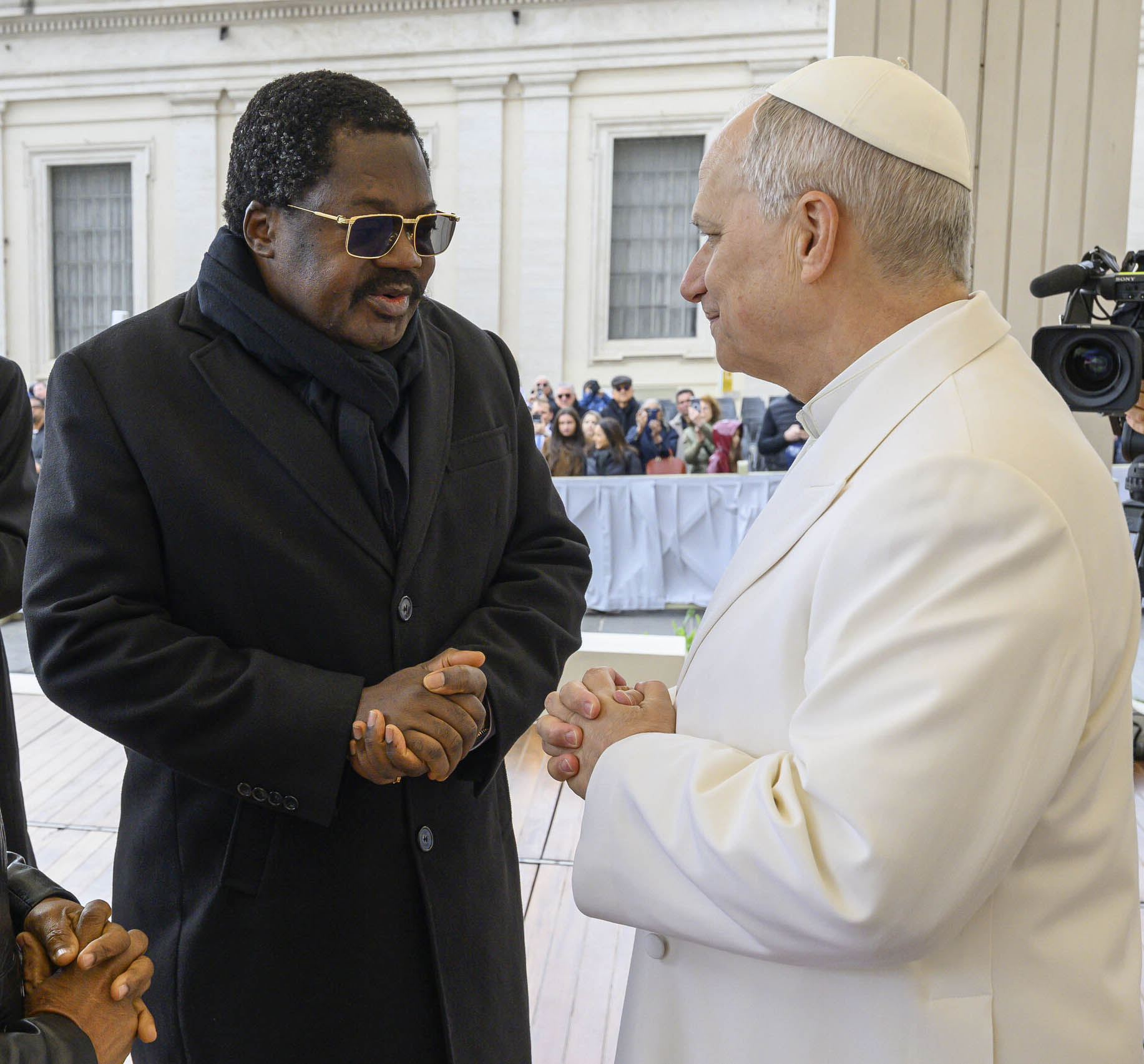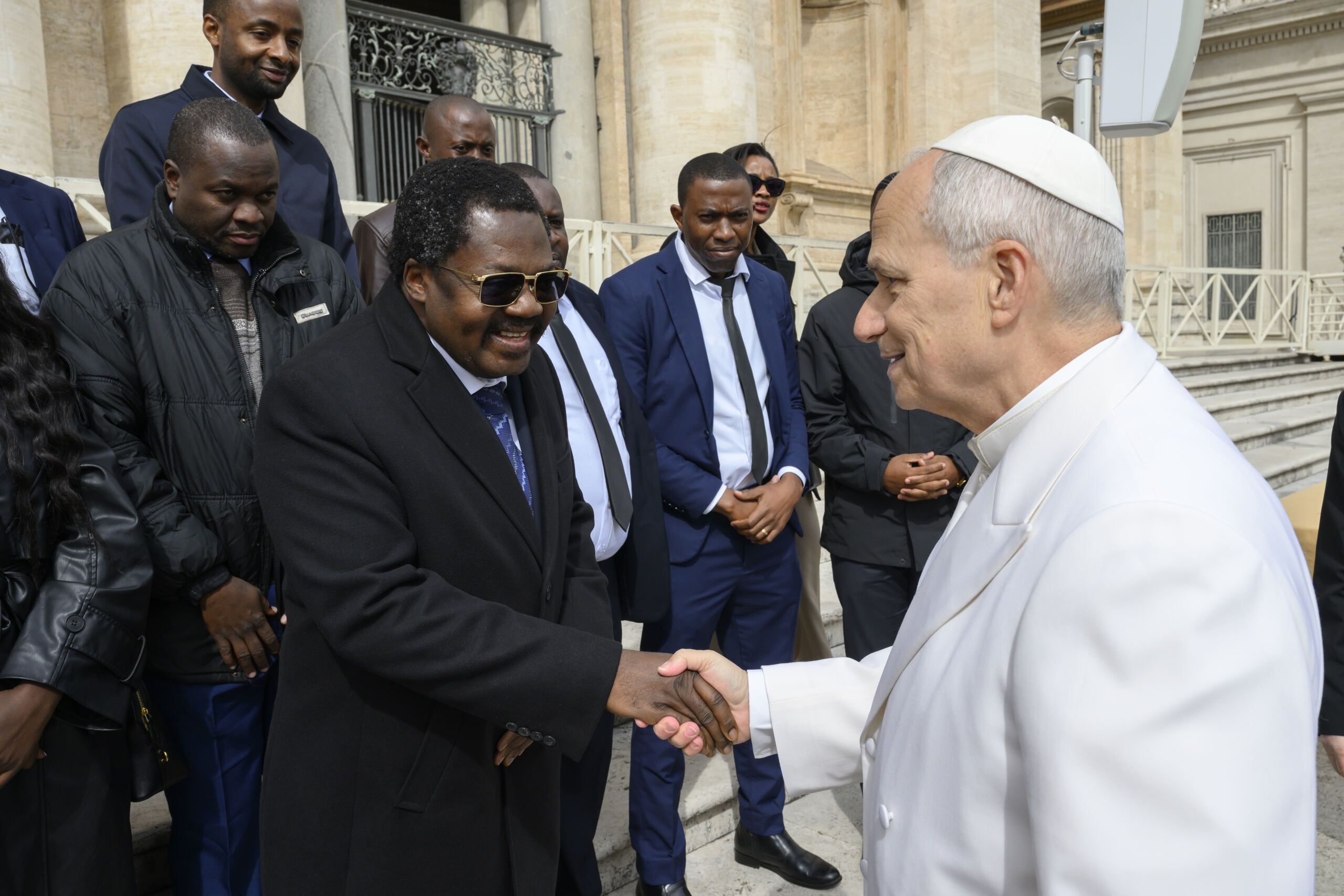 Makamu wa Rais wa Jamhuri ya Muungano wa Tanzania Mhe. Balozi Dkt. Emmanuel Nchimbi akisalimiana na Kiongozi Mkuu wa Kanisa Katoliki Duniani, Baba Mtakatifu Leo XIV, mara baada ya Ibada ya Hija iliyofanyika katika Uwanja wa Kanisa Kuu la Mtakatifu Petro – Vatican leo tarehe 01 Aprili 2026.