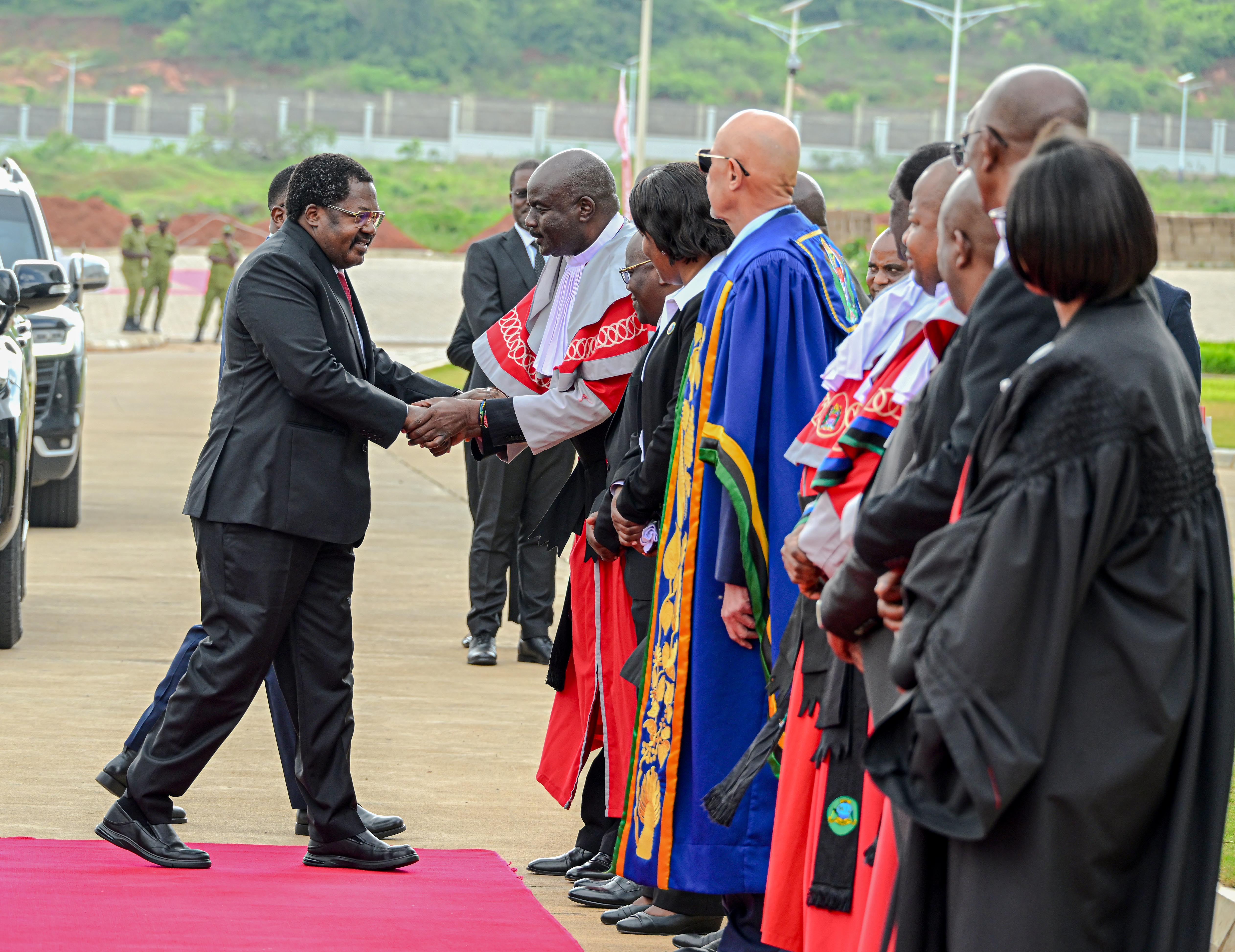 Makamu wa Rais wa Jamhuri ya Muungano wa Tanzania Mhe.Balozi Dkt. Emmanuel Nchimbi akisalimiana na Jaji Mkuu wa Tanzania Mhe. George Masaju pamoja na Viongozi mbalimbali, wakati alipowasili Makao Makuu ya Mahakama ya Tanzania, Tambukareli, Jijini Dodoma kushiriki Maadhimisho ya Siku ya Sheria nchini, leo tarehe 02 Februari 2026.