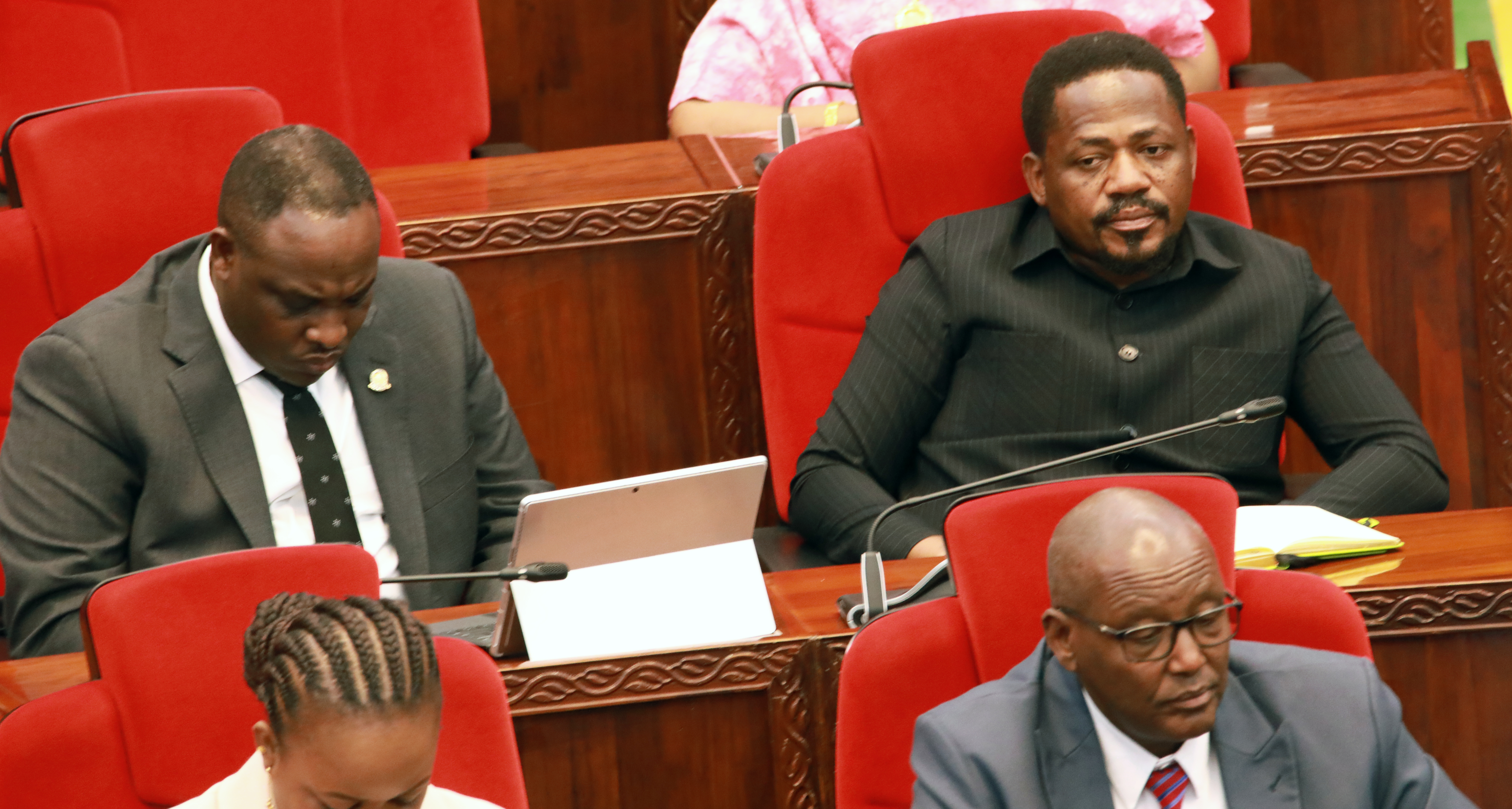 Naibu Waziri Ofisi ya Makamu wa Rais (Muungano na Mazingira) Mhe. Reuben Kwagilwa (kulia) akishiriki kikao cha Bunge wakati wa majadiliano kuhusu Makadirio ya Mapato na Matumizi ya Ofisi ya Waziri Mkuu na Ofisi ya Bunge kwa mwaka 2026/27 bungeni jijini Dodoma leo Aprili 09, 2026.