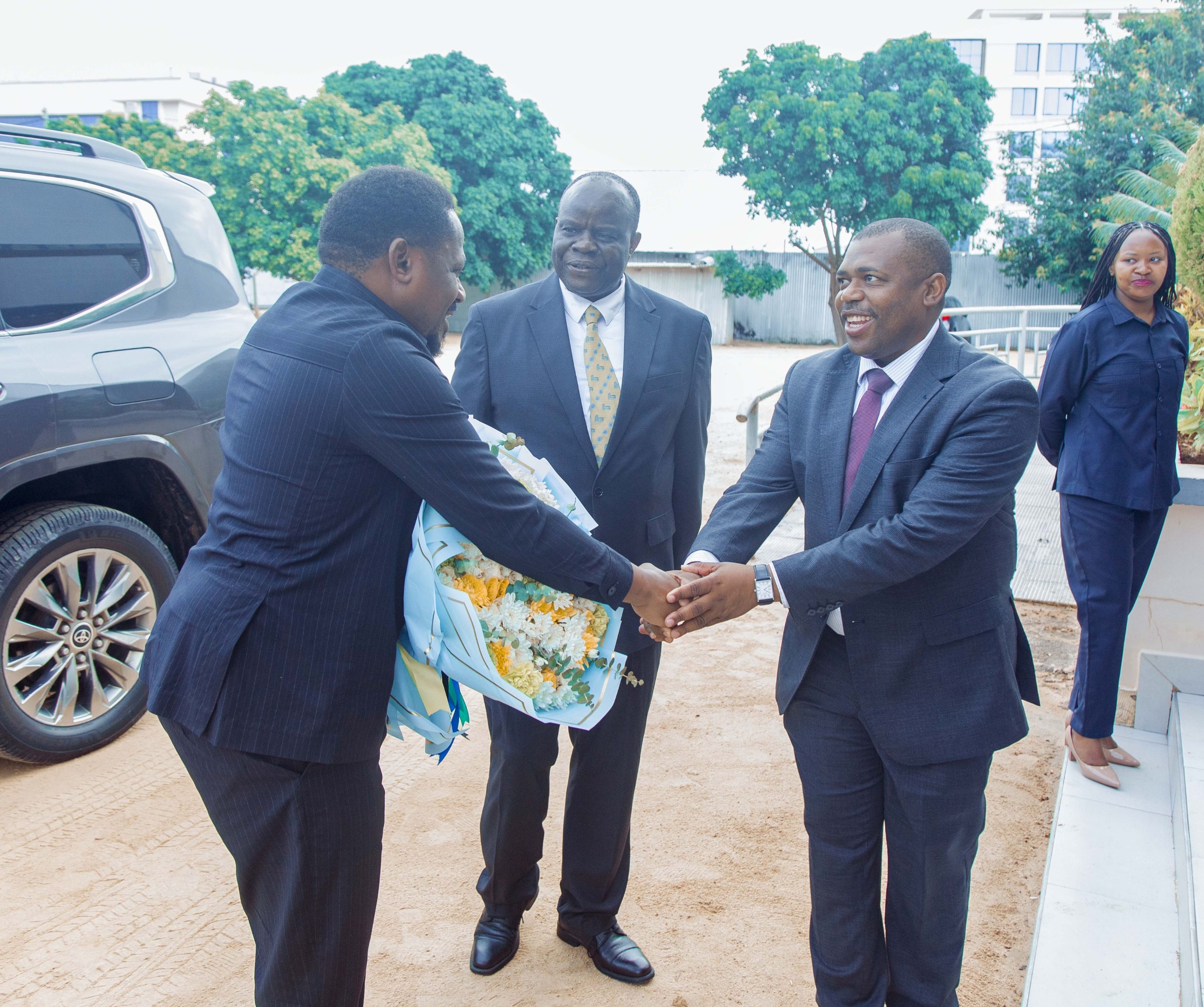 Naibu Waziri, Ofisi ya Makamu wa Rais (Muungano na Mazingira), Mhe. Reuben Kwagilwa (Kushoto) akipokelewa na Naibu Katibu Mkuu (Mazingira) Ofisi ya Makamu wa Rais, Balozi Baraka Luvanda, mara baada ya kuwasili Ofisi hiyo, Mji wa Serikali Mtumba, jijini Dodoma, Aprili 9, 2026.
