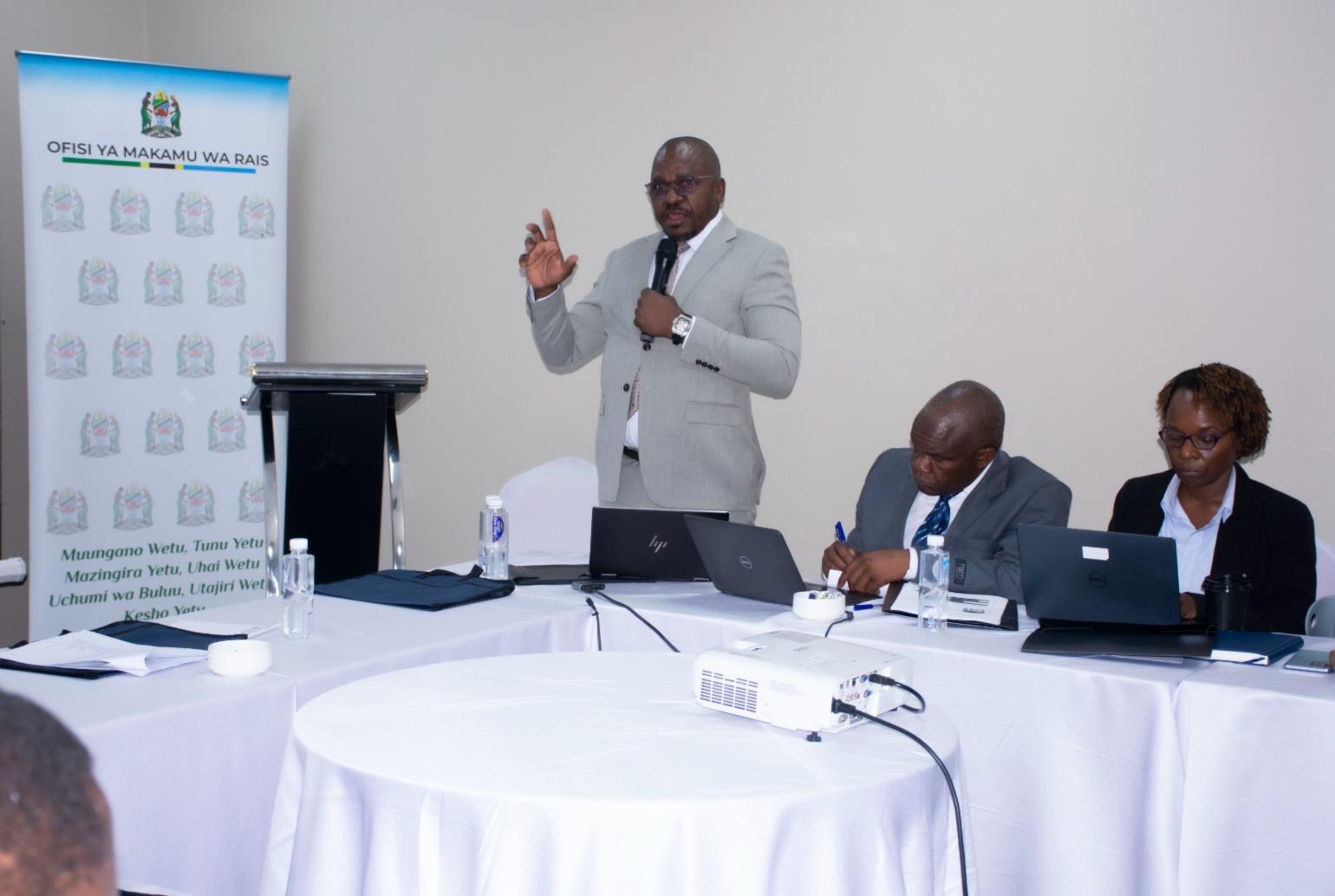Mkurugenzi Msaidizi Idara ya Mazingira Ofisi ya Makamu wa Rais, Dkt. Deogratius Paul akitoa wasilisho wakati wa kikao cha kamati ya Taifa ya ushauri wa Mabadiliko ya Tabianchi kilichofanyika jijini Dar-es-salaam Februari 18,2026.