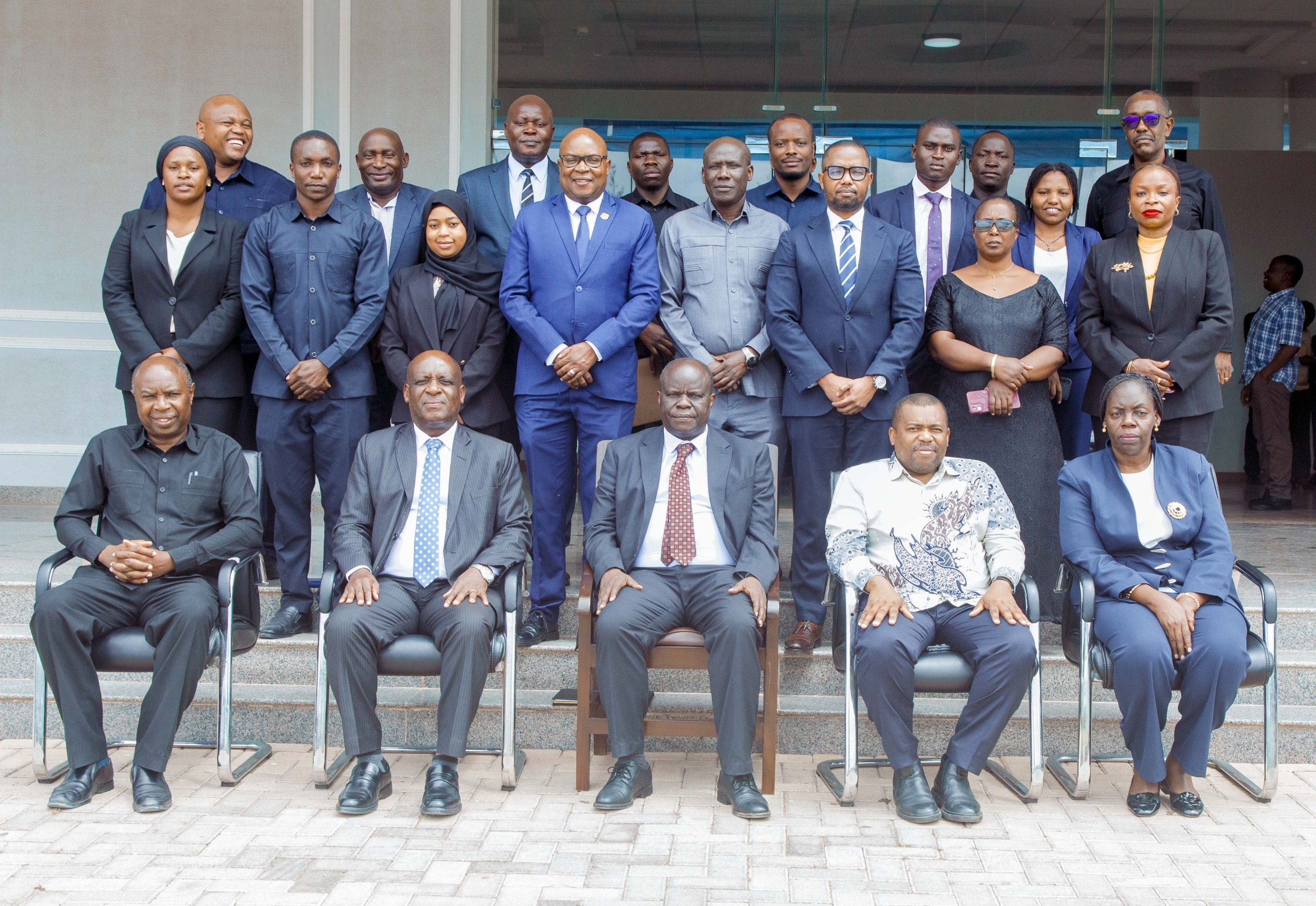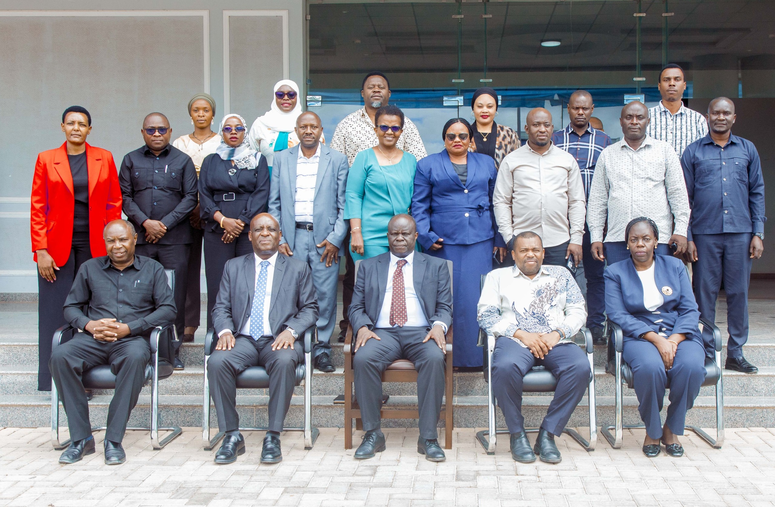Katibu Mkuu, Ofisi ya Makamu wa Rais, Dkt. Richard Muyungi (katikati waliokaa) akiwa katika picha ya pamoja na baadhi ya Menejimenti ya Ofisi ya Makamu wa Rais mara baada ya kufungua Kikao cha Makatibu Tawala wa Mikoa na Wakurugenzi wa Halmashauri kuhusu Programu ya Mageuzi ya Kimkakati ya Mazingira Endelevu Tanzania, kilichofanyika Dodoma, Aprili 16, 2026.