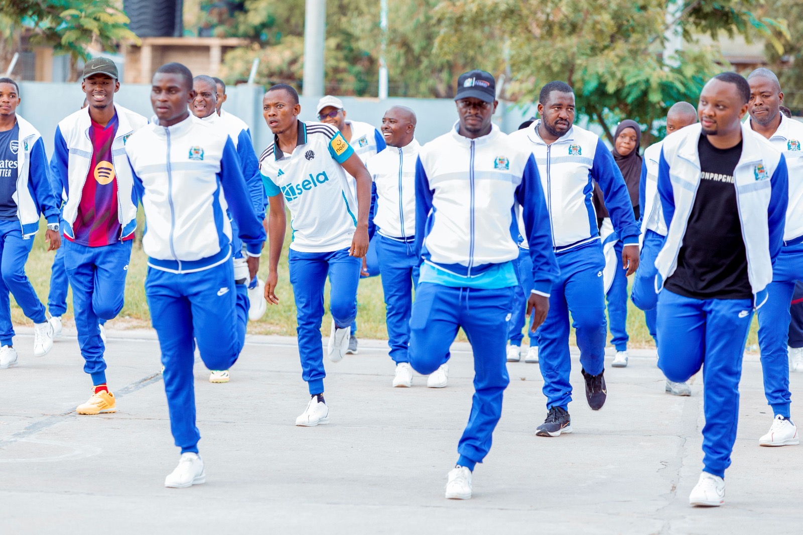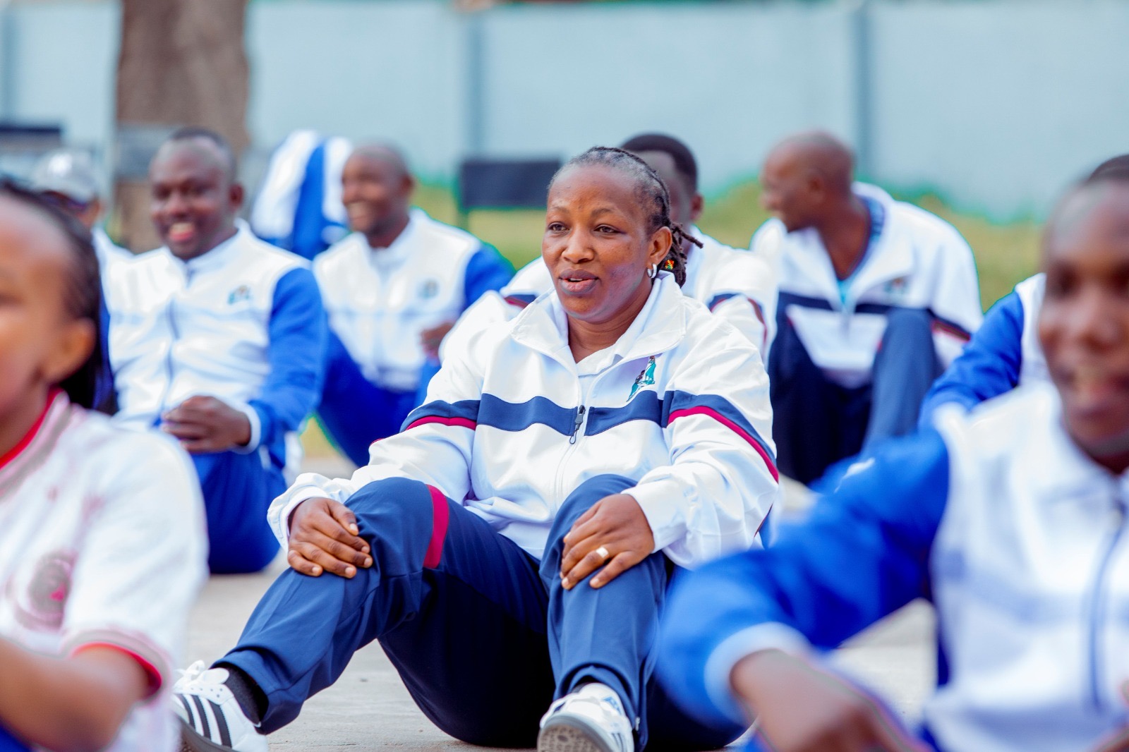 Watumishi Ofisi ya Makamu wa Rais wakiwa katika mazoezi yaliyofanyika Uwanja wa Shule ya Sekondari Dodoma, Februari 14, 2026, ikiwa moja ya kuimarisha afya ya mwili.